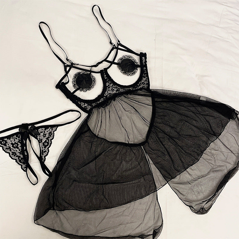 Lace Sheer Lingerie Seductive Slip Nightdress Set Babydoll Lightweight Two-piece Set Uninhibited Access