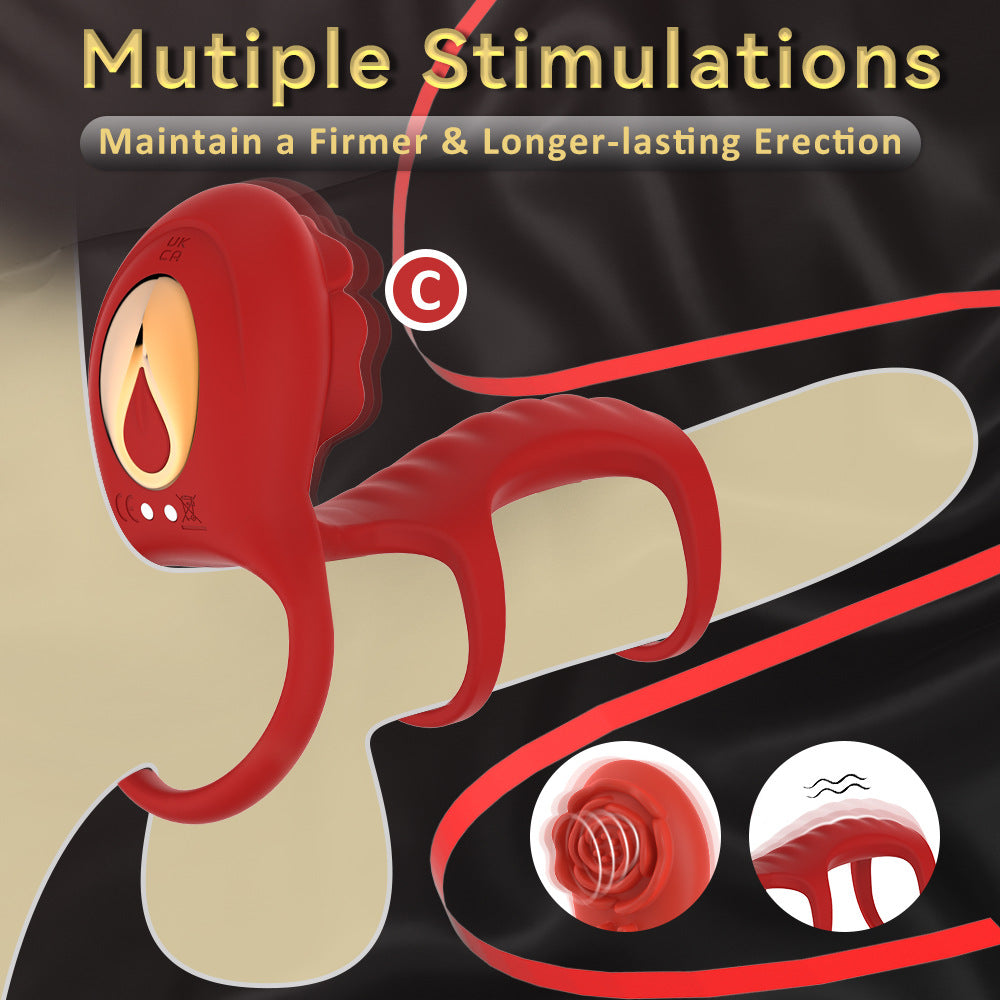 Three-Section Rose-Patterned Cock Rings for Men Remote-Controlled Male Masturbation